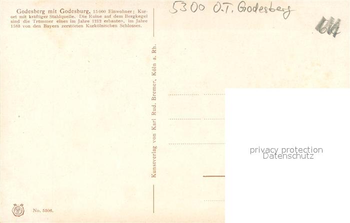 73690079 Bad Godesberg Blick zur Godesburg Kuenstlerkarte postalisch nicht gelaufen Erhaltung siehe scans [FriedD77] KatCode: 11110005314000