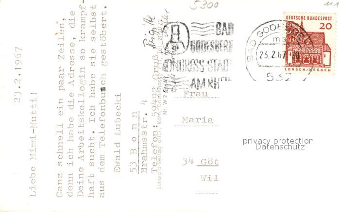 73607103 alte Postkarte Bad Godesberg Blick zur Godesburg Petersberg und Drachenfels Panorama mit Siebengebirge postalisch gelaufen Erhaltung siehe scans [WerneD78] KatCode: 11110005314000
