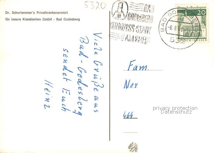 73690160 alte Postkarte Bad Godesberg Dr. Schorlemmers Privatkrankenanstalt Parkanlagen postalisch gelaufen Erhaltung siehe scans [FriedD77] KatCode: 11110005314000