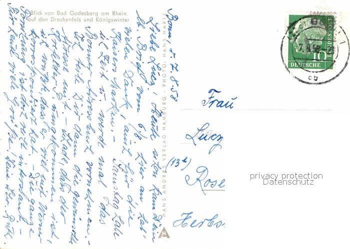 72693066 alte Postkarte Bad Godesberg Drachenfels Koenigswinter Rheinpromenade postalisch gelaufen Erhaltung siehe scans [LiesaD40] KatCode: 11110005314000