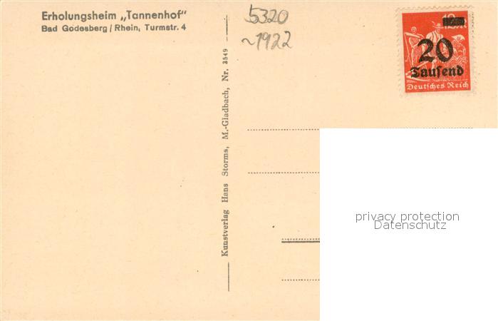 33703593 alte Postkarte Bad Godesberg Erholungsheim Tannenhof postalisch gelaufen Erhaltung siehe scans [WerneD78] KatCode: 11110005314000