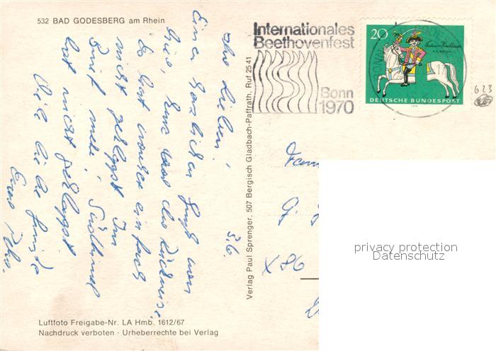 73174547 alte Postkarte Bad Godesberg Fliegeraufnahme postalisch gelaufen Erhaltung siehe scans [LiesaD40] KatCode: 11110005314000