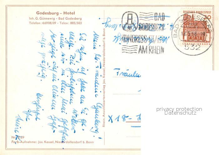 73780400 alte Postkarte Bad Godesberg Fliegeraufnahme mit Godesburg Hotel postalisch gelaufen Erhaltung siehe scans [WerneD78] KatCode: 11110005314000
