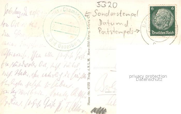 33703598 alte Postkarte Bad Godesberg Fliegeraufnahme mit Siebengebirge postalisch gelaufen Erhaltung siehe scans [WerneD78] KatCode: 11110005314000