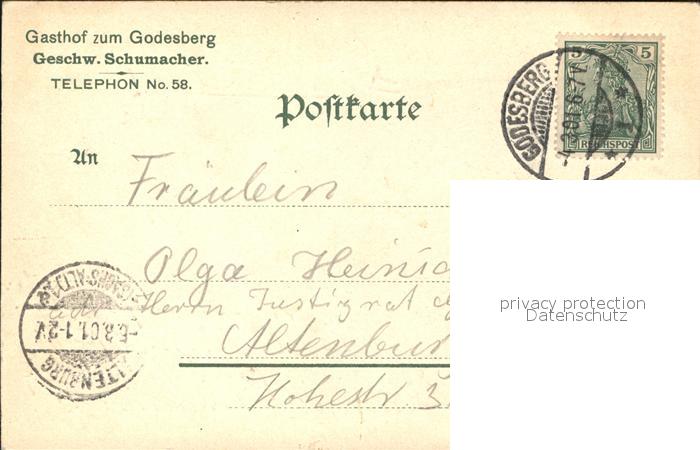 71570520 alte Postkarte Bad Godesberg Gasthof zum Godesberg postalisch gelaufen Erhaltung siehe scans KatCode: 11110005314000