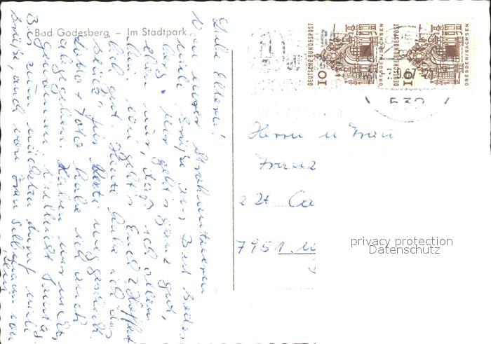 72063994 alte Postkarte Bad Godesberg Im Stadtpark Fontaene postalisch gelaufen Erhaltung siehe scans KatCode: 11110005314000