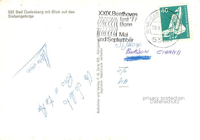 73043558 alte Postkarte Bad Godesberg mit Blick auf das Siebengebirge Fliegeraufnahme postalisch gelaufen Erhaltung siehe scans [FriedD77] KatCode: 11110005314000