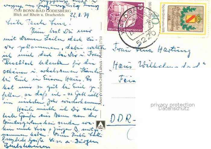 72771467 alte Postkarte Bad Godesberg mit Drachenfels Bootsanlegestelle postalisch gelaufen Erhaltung siehe scans [WerneD78] KatCode: 11110005314000