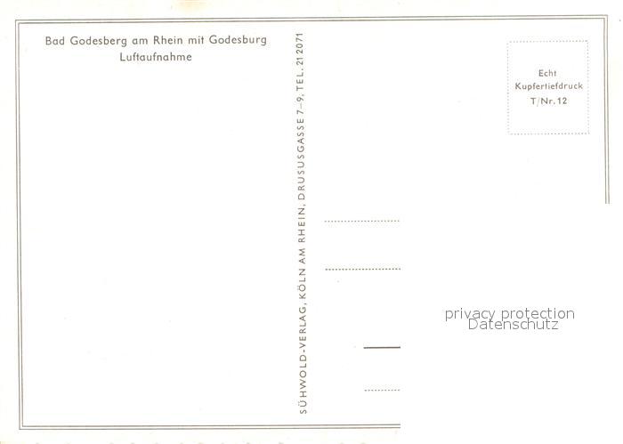 73629300 Bad Godesberg mit Godesburg Fliegeraufnahme Kupfertiefdruck postalisch nicht gelaufen Erhaltung siehe scans [FriedD77] KatCode: 11110005314000