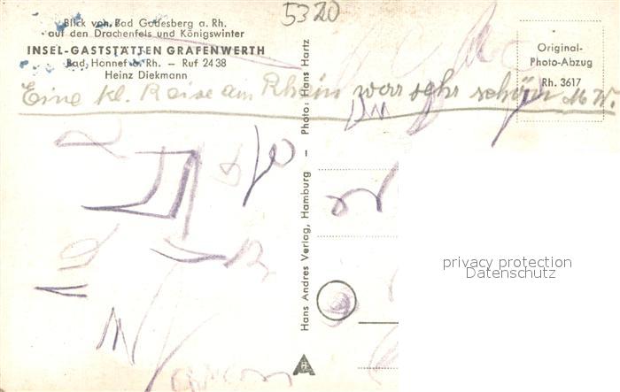 73690102 Bad Godesberg Panorama Blick auf Drachenfels und Koenigswinter Rheinfaehren postalisch nicht gelaufen Erhaltung siehe scans [FriedD77] KatCode: 11110005314000
