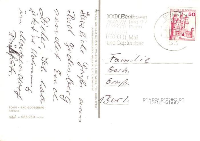 73103177 alte Postkarte Bad Godesberg Redoute postalisch gelaufen Erhaltung siehe scans [WerneD78] KatCode: 11110005314000