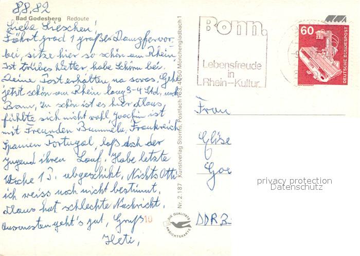 72987998 alte Postkarte Bad Godesberg Redoute Park postalisch gelaufen Erhaltung siehe scans [FriedD77] KatCode: 11110005314000