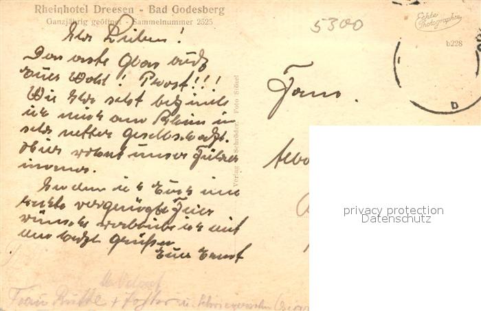 43370617 alte Postkarte Bad Godesberg Rheinhotel Dreesen Hotelgarten postalisch gelaufen Erhaltung siehe scans [FriedD77] KatCode: 11110005314000