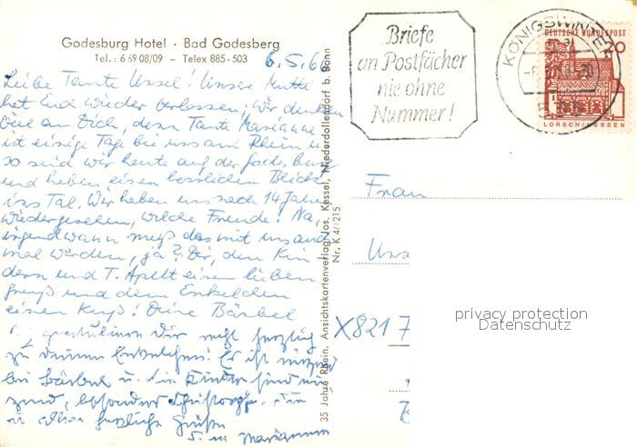 73070051 alte Postkarte Bad Godesberg Rheinpartie Godesburg Hotel Wasserspiele postalisch gelaufen Erhaltung siehe scans [WerneD78] KatCode: 11110005314000