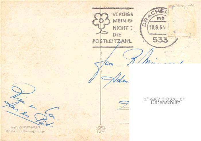 72845293 alte Postkarte Bad Godesberg Siebengebirge Dampfer postalisch gelaufen Erhaltung siehe scans [NatalD47] KatCode: 11110005314000