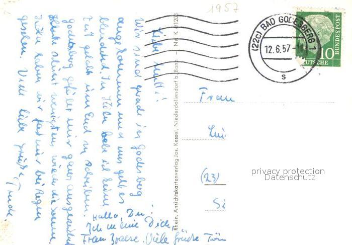 73141959 alte Postkarte Bad Godesberg Stadtpanorama mit Godesburg postalisch gelaufen Erhaltung siehe scans [FriedD77] KatCode: 11110005314000