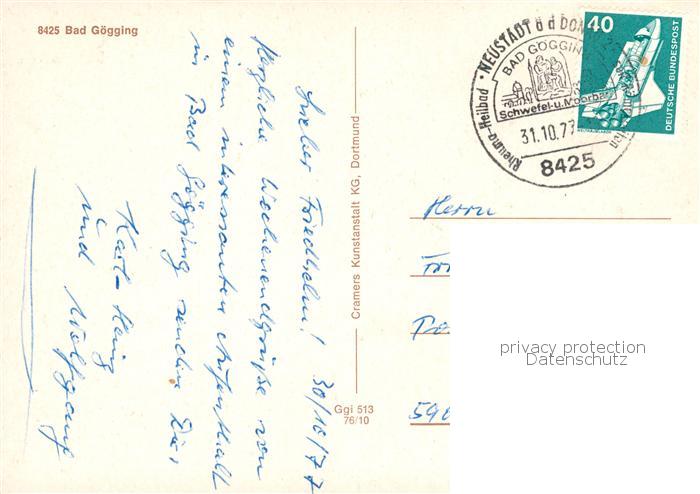 73833704 alte Postkarte Bad Goegging Fliegeraufnahme Kurpark Trajansbad Kurheim Eichschmid Roemerbad Kurkonzert postalisch gelaufen Erhaltung siehe scans [FriedD77] KatCode: 11110009273152