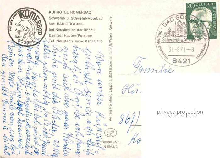 72852547 alte Postkarte Bad Goegging Kurhotel Roemerbad postalisch gelaufen Erhaltung siehe scans [AndreD76] KatCode: 11110009273152