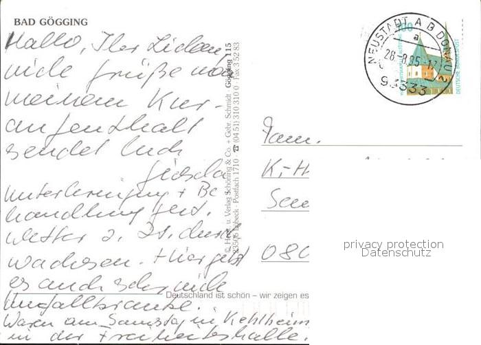 72528340 alte Postkarte Bad Goegging Kurzentrum Schwimmbad Platz Brunnen postalisch gelaufen Erhaltung siehe scans KatCode: 11110009273152