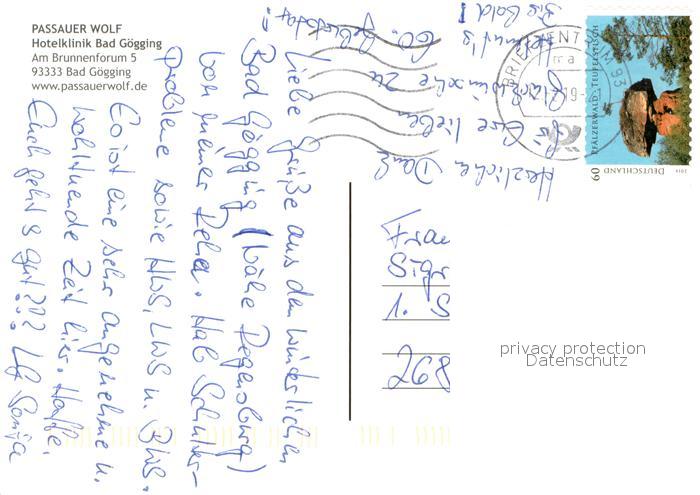 73712065 alte Postkarte Bad Goegging Passauer Wolf Hotelklinik Park Kapelle postalisch gelaufen Erhaltung siehe scans [WerneD78] KatCode: 11110009273152