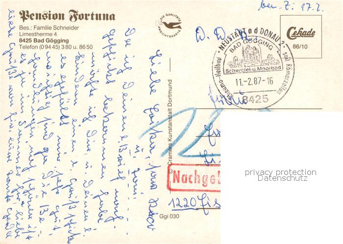 73660552 alte Postkarte Bad Goegging Pension Fortuna Brunnen Plastiken postalisch gelaufen Erhaltung siehe scans [FriedD77] KatCode: 11110009273152