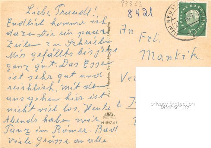 73763018 alte Postkarte Bad Goegging Roemerbad Kurmittelhaus Roemerbadquelle Speisesaal postalisch gelaufen Erhaltung siehe scans [FriedD77] KatCode: 11110009273152