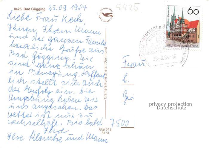 74049281 alte Postkarte Bad Goegging Schwefelbad Trajansbad Trajansquelle postalisch gelaufen Erhaltung siehe scans [FriedD77] KatCode: 11110009273152