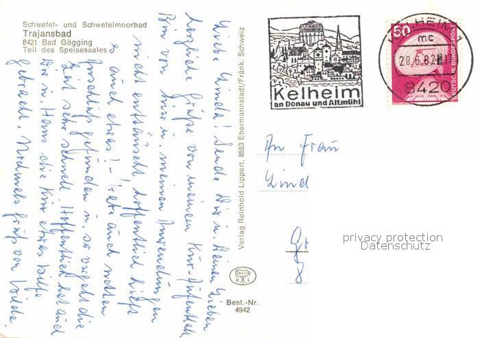 72899980 alte Postkarte Bad Goegging Trajansbad Speisesaal postalisch gelaufen Erhaltung siehe scans [NatalD47] KatCode: 11110009273152