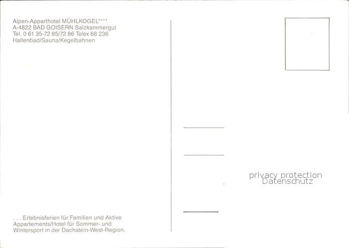 72495892 Bad Goisern Salzkammergut Alpen Apparthotel Muehlkogel postalisch nicht gelaufen Erhaltung siehe scans KatCode: 11390315040702