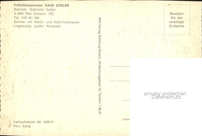 72438098 Bad Goisern Salzkammergut Fruehstueckspension Haus Sydler postalisch nicht gelaufen Erhaltung siehe scans KatCode: 11390315040702