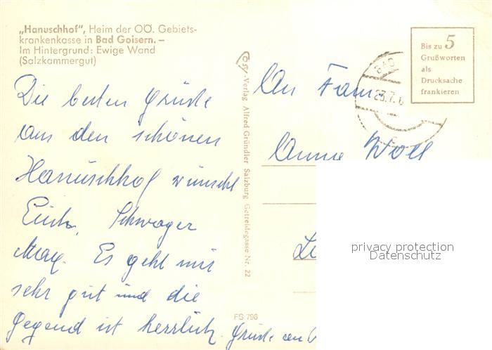 73655676 alte Postkarte Bad Goisern Salzkammergut Hanuschhof Heim der Ooe Gebietskrankenkasse postalisch gelaufen Erhaltung siehe scans [WerneD78] KatCode: 11390315040702