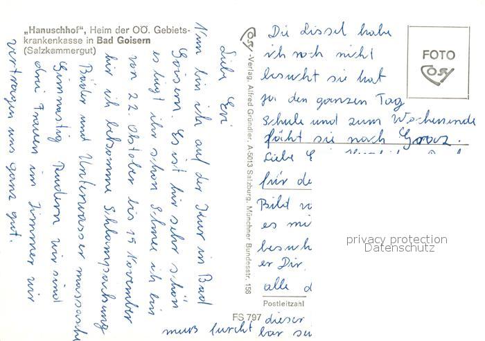 73491980 alte Postkarte Bad Goisern Salzkammergut Hanuschhof Heim der Ooe Gebietskrankenkasse postalisch gelaufen Erhaltung siehe scans [WerneD78] KatCode: 11390315040702