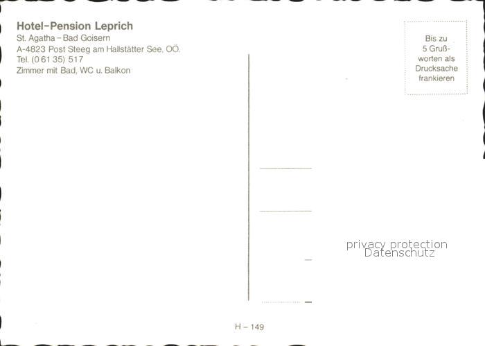 72066361 Bad Goisern Salzkammergut Hotel Pension Leprich postalisch nicht gelaufen Erhaltung siehe scans KatCode: 11390315040702