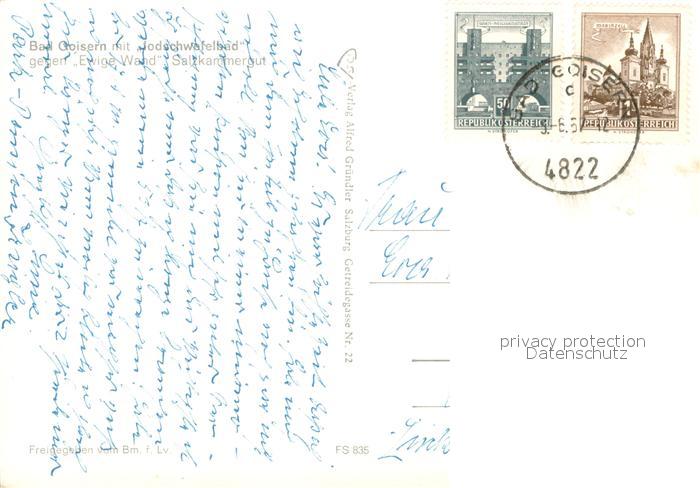 73644696 alte Postkarte Bad Goisern Salzkammergut Jodschwefelbad gegen Ewige Wand Fliegeraufnahme postalisch gelaufen Erhaltung siehe scans [FriedD77] KatCode: 11390315040702