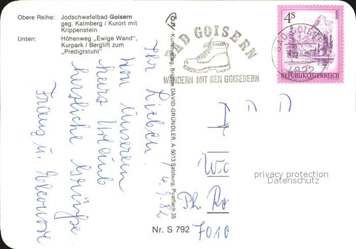 72536707 alte Postkarte Bad Goisern Salzkammergut Jodschwefelbad Krippenstein Ewige Wand Berglift zum Predigerstuhl postalisch gelaufen Erhaltung siehe scans [AndreD76 kt121box] KatCode: 11390315040702