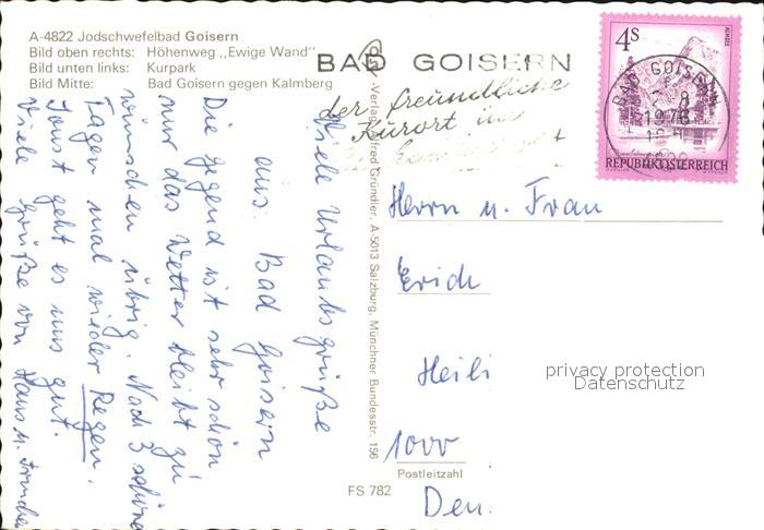 72438994 alte Postkarte Bad Goisern Salzkammergut Jodschwefelbad Kurpark Kalmberg postalisch gelaufen Erhaltung siehe scans KatCode: 11390315040702