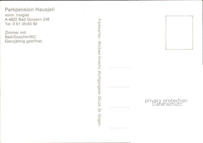 72210702 Bad Goisern Salzkammergut Parkpension Hausjell postalisch nicht gelaufen Erhaltung siehe scans KatCode: 11390315040702