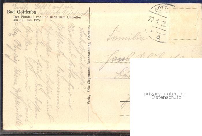 72119001 alte Postkarte Bad Gottleuba-Berggiesshuebel Flusslauf vor und nach Unwetter vom Juli 1927 postalisch gelaufen Erhaltung siehe scans KatCode: 11110014287015