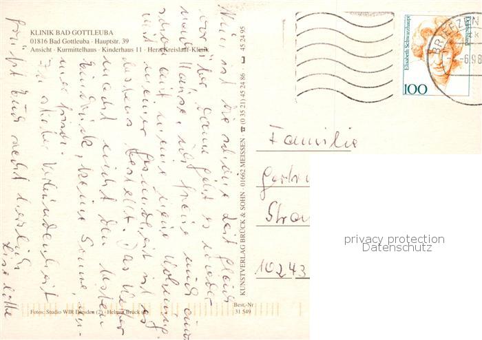 73840882 alte Postkarte Bad Gottleuba-Berggiesshuebel Klinik Kurmittelhaus Kinderhaus Herz-Kreislauf-Klinik postalisch gelaufen Erhaltung siehe scans [FriedD77] KatCode: 11110014287015