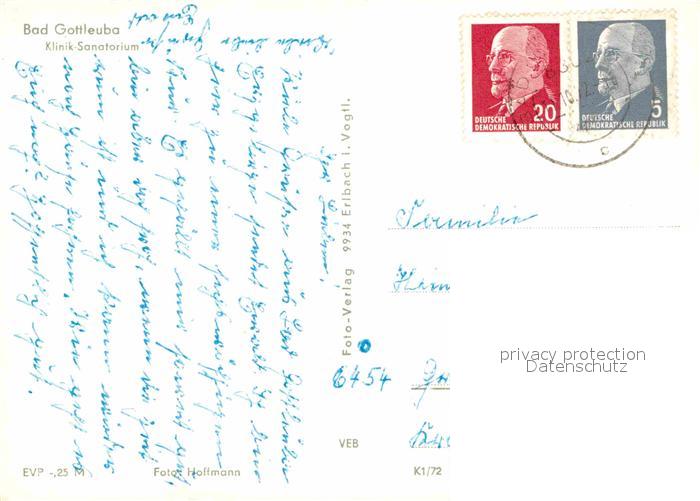 72859734 alte Postkarte Bad Gottleuba-Berggiesshuebel Klinik-Sanatorium postalisch gelaufen Erhaltung siehe scans [NatalD47] KatCode: 11110014287015