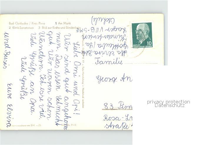 72412804 alte Postkarte Bad Gottleuba-Berggiesshuebel Markt Klinik Sanatorium Kirche Blindenheim postalisch gelaufen Erhaltung siehe scans KatCode: 11110014287015