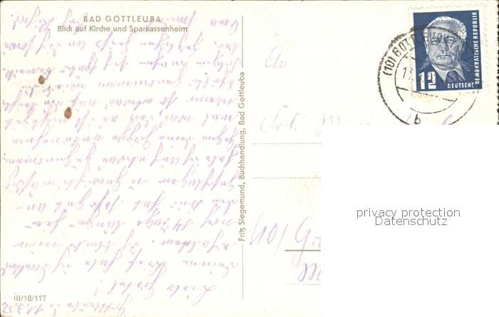 72167406 alte Postkarte Bad Gottleuba-Berggiesshuebel mit Kirche und Sparkassenheim postalisch gelaufen Erhaltung siehe scans KatCode: 11110014287015