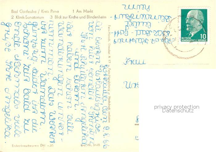 73754364 alte Postkarte Bad Gottleuba-Berggiesshuebel Motiv am Markt Klinik Sanatorium Kirche Blindenheim postalisch gelaufen Erhaltung siehe scans [FriedD77] KatCode: 11110014287015