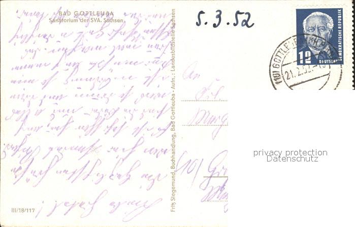 72167405 alte Postkarte Bad Gottleuba-Berggiesshuebel Sanatorium der SVA Sachsen postalisch gelaufen Erhaltung siehe scans KatCode: 11110014287015