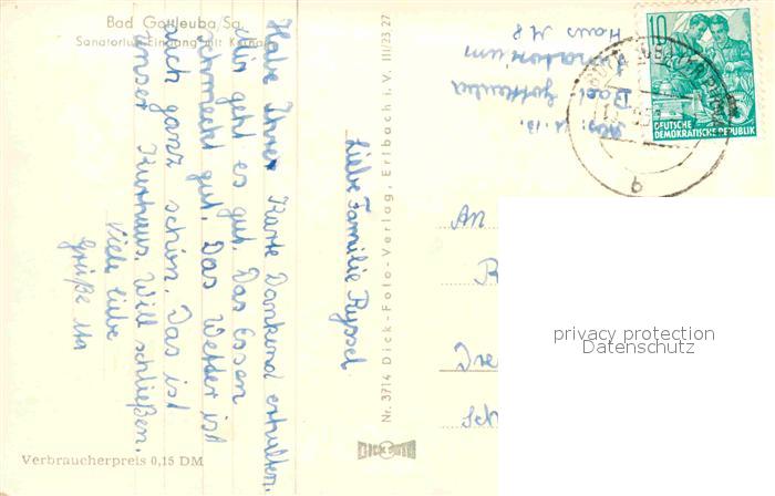 72638352 alte Postkarte Bad Gottleuba-Berggiesshuebel Sanatorium Eingang Kurhaus postalisch gelaufen Erhaltung siehe scans [KathaD79] KatCode: 11110014287015