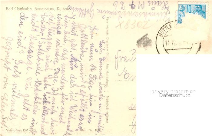72981830 alte Postkarte Bad Gottleuba-Berggiesshuebel Sanatorium Kurhaus postalisch gelaufen Erhaltung siehe scans [FriedD77] KatCode: 11110014287015