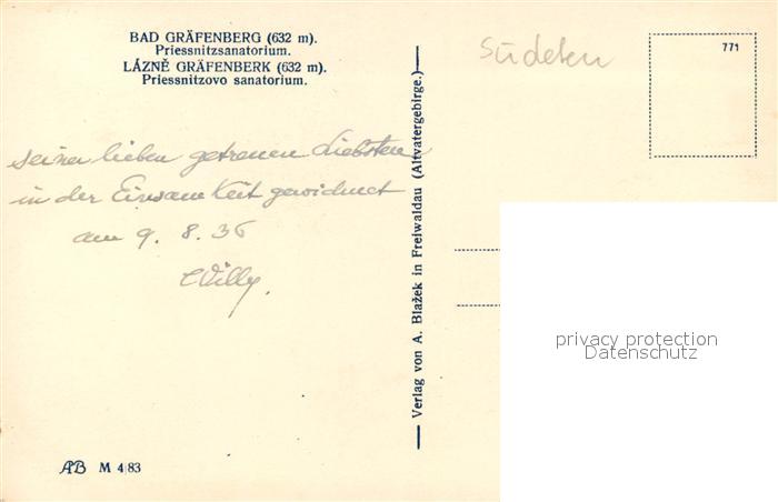 Bad Graefenberg Schlesien Durchblick zum Priessnitzsanatorium postalisch nicht gelaufen Erhaltung siehe scans [FriedD77]