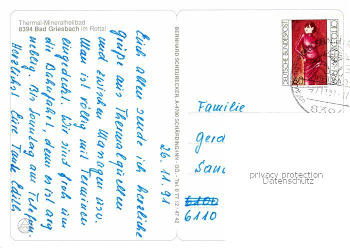 72797084 alte Postkarte Bad Griesbach Rottal postalisch gelaufen Erhaltung siehe scans [LiesaD40] KatCode: 11110009275124