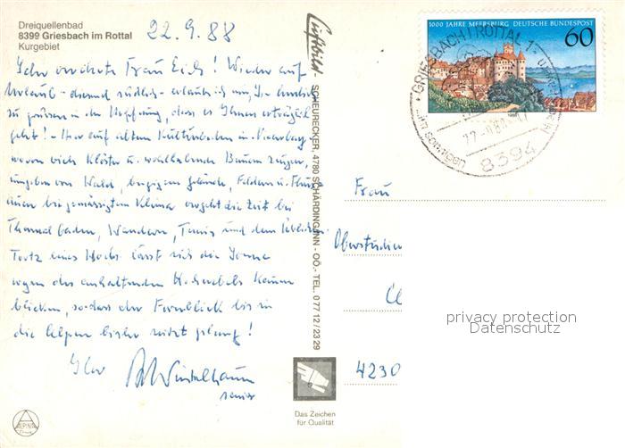 72944603 alte Postkarte Bad Griesbach Rottal Dreiquellenbad Fliegeraufnahme postalisch gelaufen Erhaltung siehe scans [FriedD77] KatCode: 11110009275124