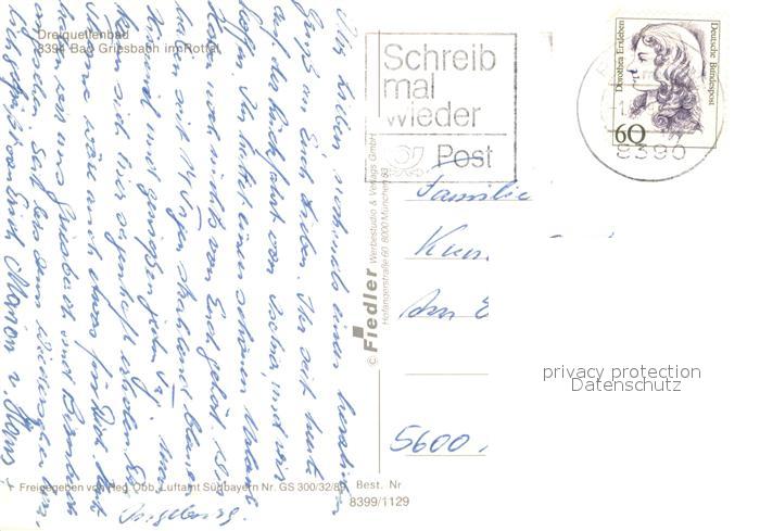 73747648 alte Postkarte Bad Griesbach Rottal Dreiquellenbad Fliegeraufnahme postalisch gelaufen Erhaltung siehe scans [WerneD78] KatCode: 11110009275124